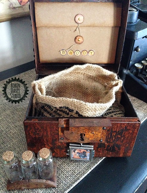 My next step was making the metal box "rusty" and "weathered". I wanted a beautiful rich shade of red brown...the color of Brody.
